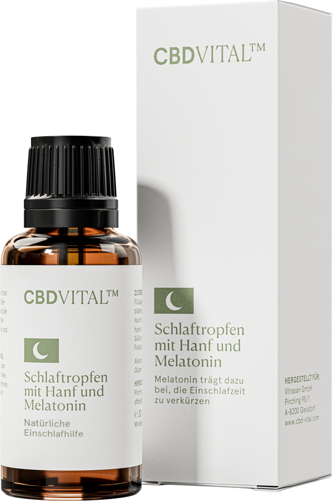 Der Mikronährstoffkomplex kombiniert Hanf mit ausgewählten Mikronähstoffen und Melatonin, wodurch die Schlafqualität ganzheitlich optimiert wird. Die einzigartige Formel erleichtert das Einschlafen, verkürzt die Einschlafzeit und verlängert die Schlafdauer. Zudem harmonisiert der Nährstoffkomplex den Organismus, wodurch der Erholungs- und Regenerationseffekt optimiert wird. Die CBD VITAL Hanf Schlaf-Formel enthält neben Hanf auch Melatonin, um die Einschlafzeit zu verkürzen.